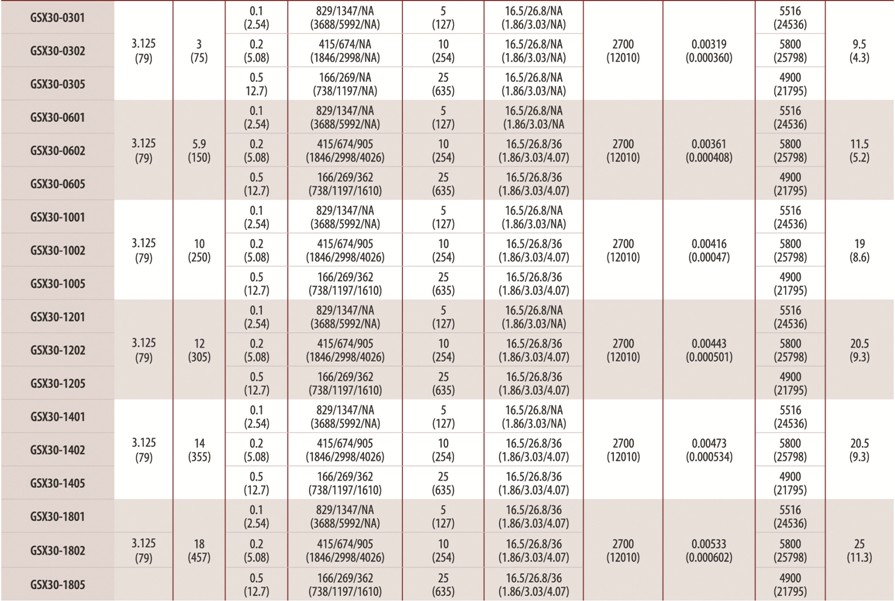 | GSX系列訂購信息 |